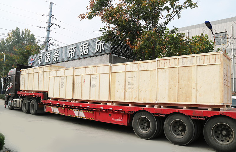 2022年10月初,公司新接俄羅斯客戶訂單三批訂單43臺各種型號帶鋸床。經過公司全體員工加班加點努力,11月9日,出口俄羅斯第二批帶鋸床16臺已完成發貨,兩款型號的帶鋸床均為雙立柱結構、導向精度高、靈活穩定的數控鋸床。截止發稿,第三批10臺仍在緊張生產當中。