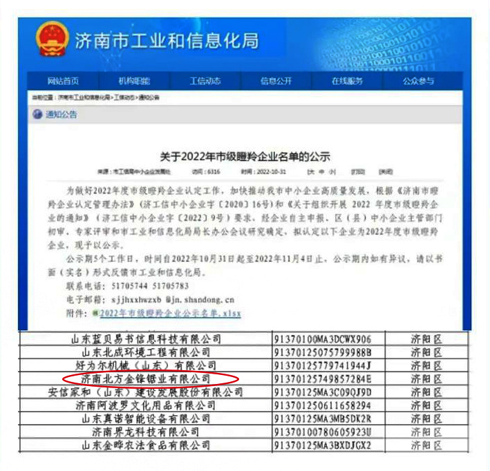 繼被認(rèn)定國(guó)家級(jí)高效技術(shù)企業(yè)、山東省知名品牌企業(yè)、山東省“專(zhuān)精特新”企業(yè)、濟(jì)南市綠色工廠(chǎng)、“國(guó)家火炬計(jì)劃產(chǎn)業(yè)化示范項(xiàng)目”等榮譽(yù)稱(chēng)號(hào)后,新近,金鋒鋸業(yè)又獲得濟(jì)南市“瞪羚”企業(yè)榮譽(yù)稱(chēng)號(hào),這是企業(yè)強(qiáng)本固基、提質(zhì)增效、創(chuàng)新驅(qū)動(dòng)、激發(fā)活力的有力佐證。