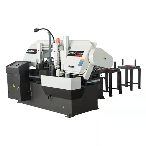 數控GS280臥式角度帶鋸床屬于剪切式結構,可平切,也可旋轉0~45°的任意角度調整切割,此型號臥式角度帶鋸床配置全自動數控技術,適合大批量生產連續切割,選配承重料架,可實現自動精準送料,切割效率高,切割精度高,經濟效益強,鋸床可一人操作多臺,智能的彩色觸摸屏界面方便操控,安全環保,鋸床在支持全自動工作的同時,也可以在小批量加工需求或有特殊形狀加工需求時,切換為手動操控,鋸切范圍廣,是理想的多性能金屬切割高效設備。