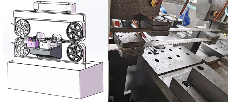 JFSJT-100雙鋸條帶鋸床屬于非標定制設備,主要用工件的切縫加工,具有切削效率高、鋸口窄、節能省料、操作簡單等特點JFSJT-100雙鋸條帶鋸床采用了臥式結構,上下兩根鋸條、雙工位交替鋸切,提高了鋸切效率和鋸切精度,是企業批量生產的理想設備。